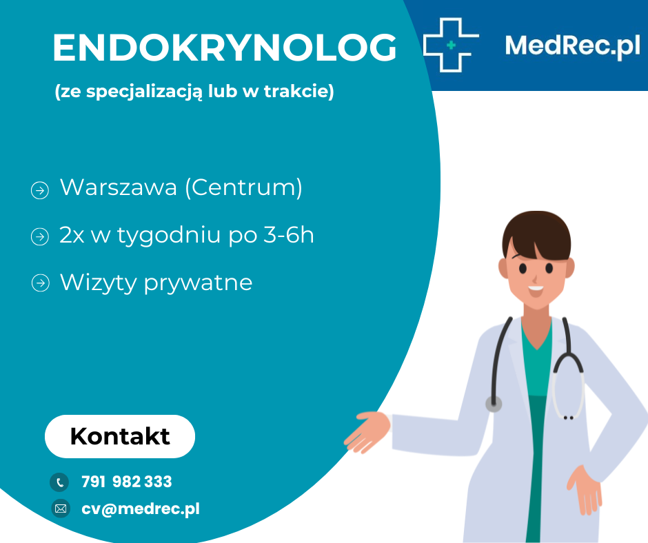 Prywatne, nowoczesne centrum medyczne w centrum Warszawy poszukuje do współpracy na min. 2 dni w tygodniu Lekarza Endokrynologa (ze specjalizacją lub w trakcie).