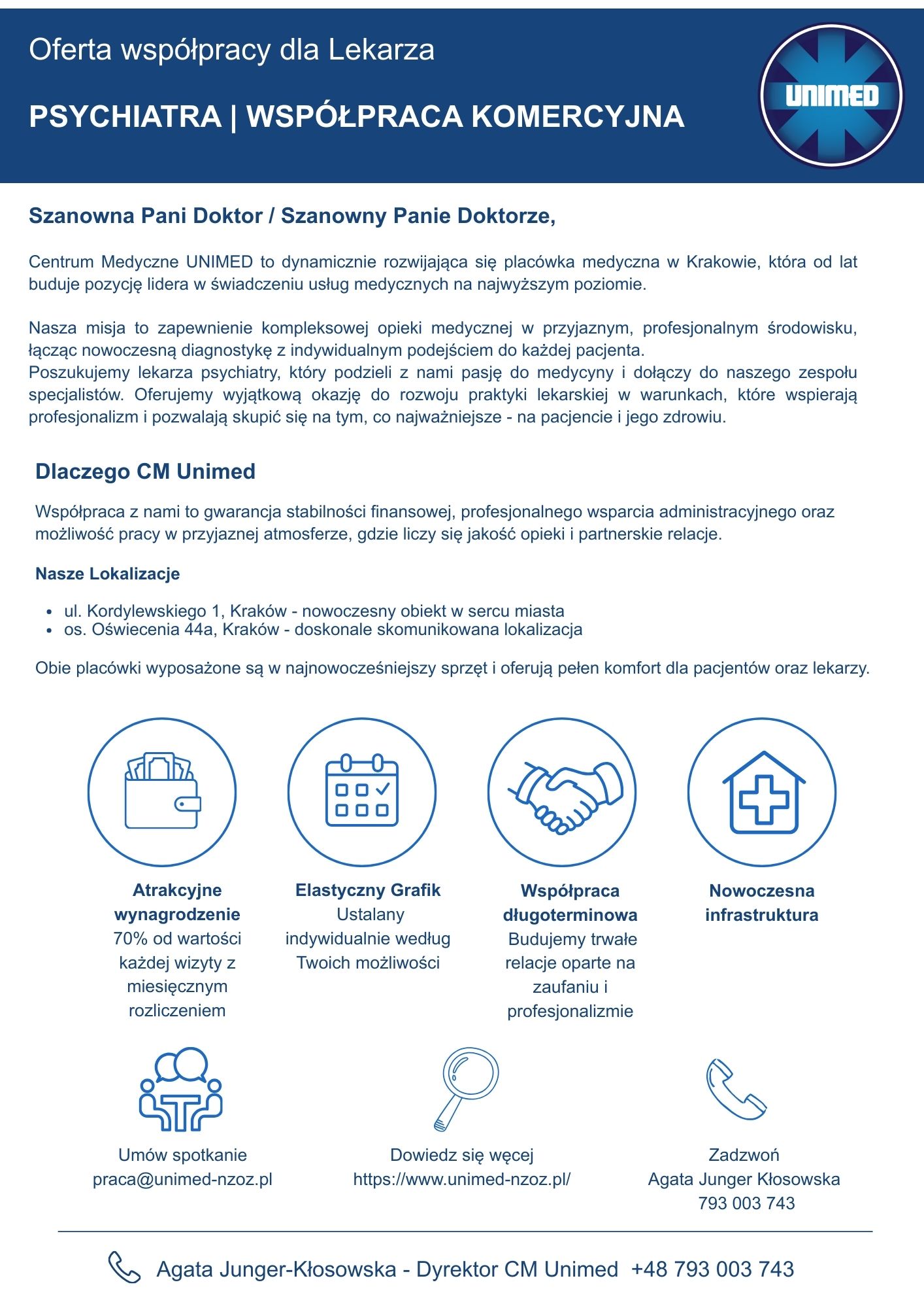 Agata Junger-Kłosowska - Dyrektor CM Unimed +48 793 003 743, praca@unimed-nzoz.pl